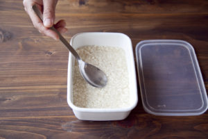 水200ml〜250ml程度を加えてよく混ぜ、清潔な容器(ホーローやガラス容器がおすすめです)に入れる。