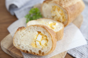 塩糀たらもとゆで卵サラダのスタッフドバケット