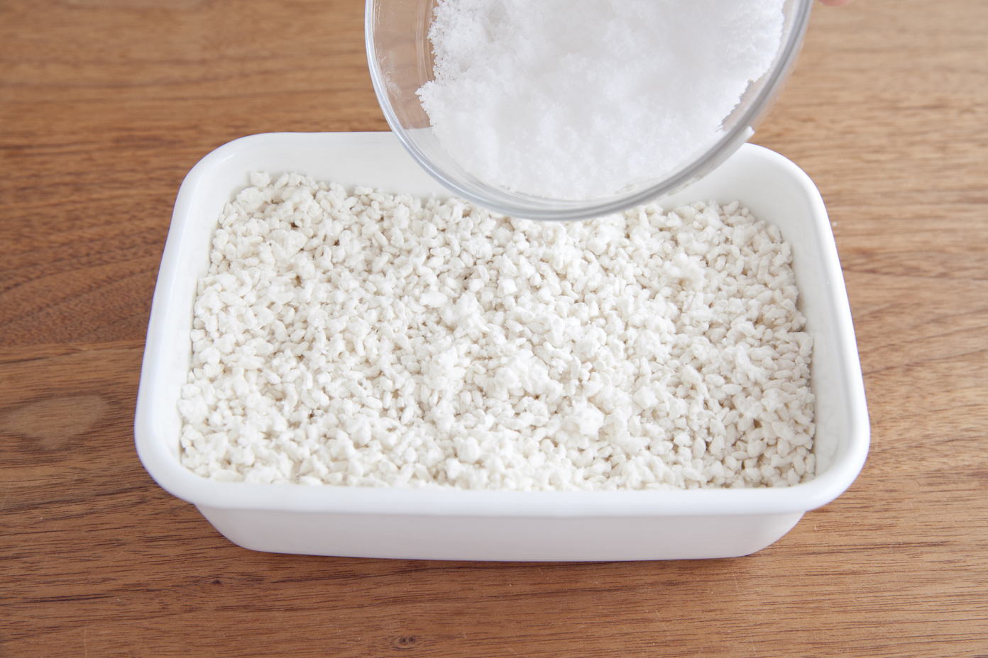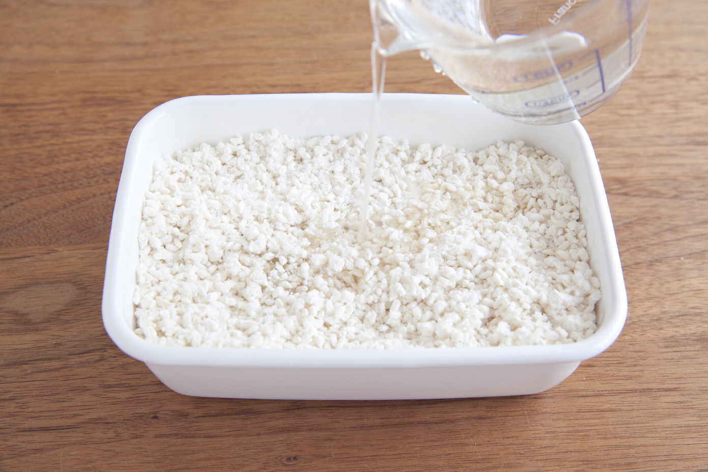 米麹を清潔な容器(ホーローやガラス容器がおすすめです)に入れ、