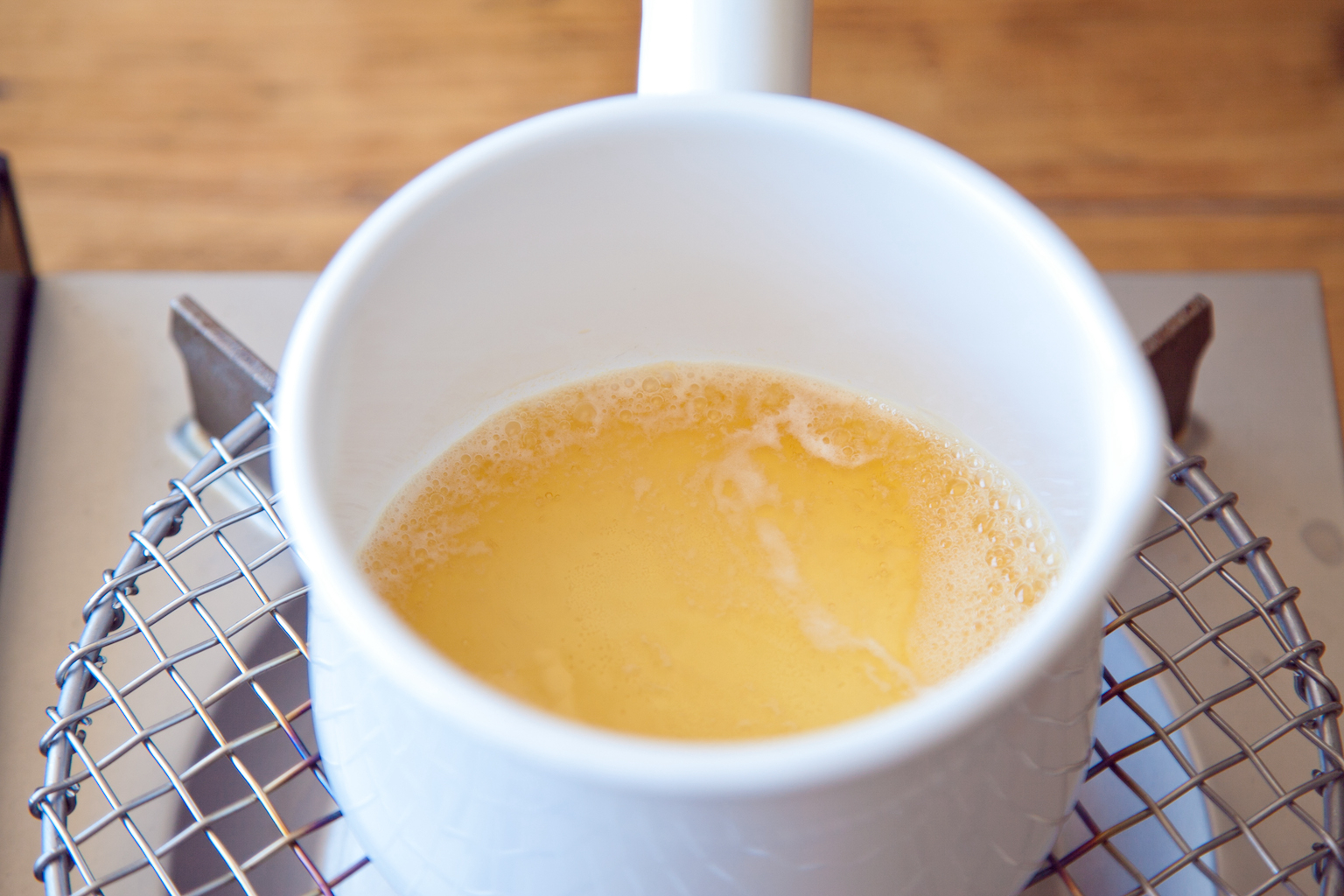 小鍋にみりんを入れて弱めの中火にかけ、1分ほど煮立てて煮切り、しっかり冷ます。
