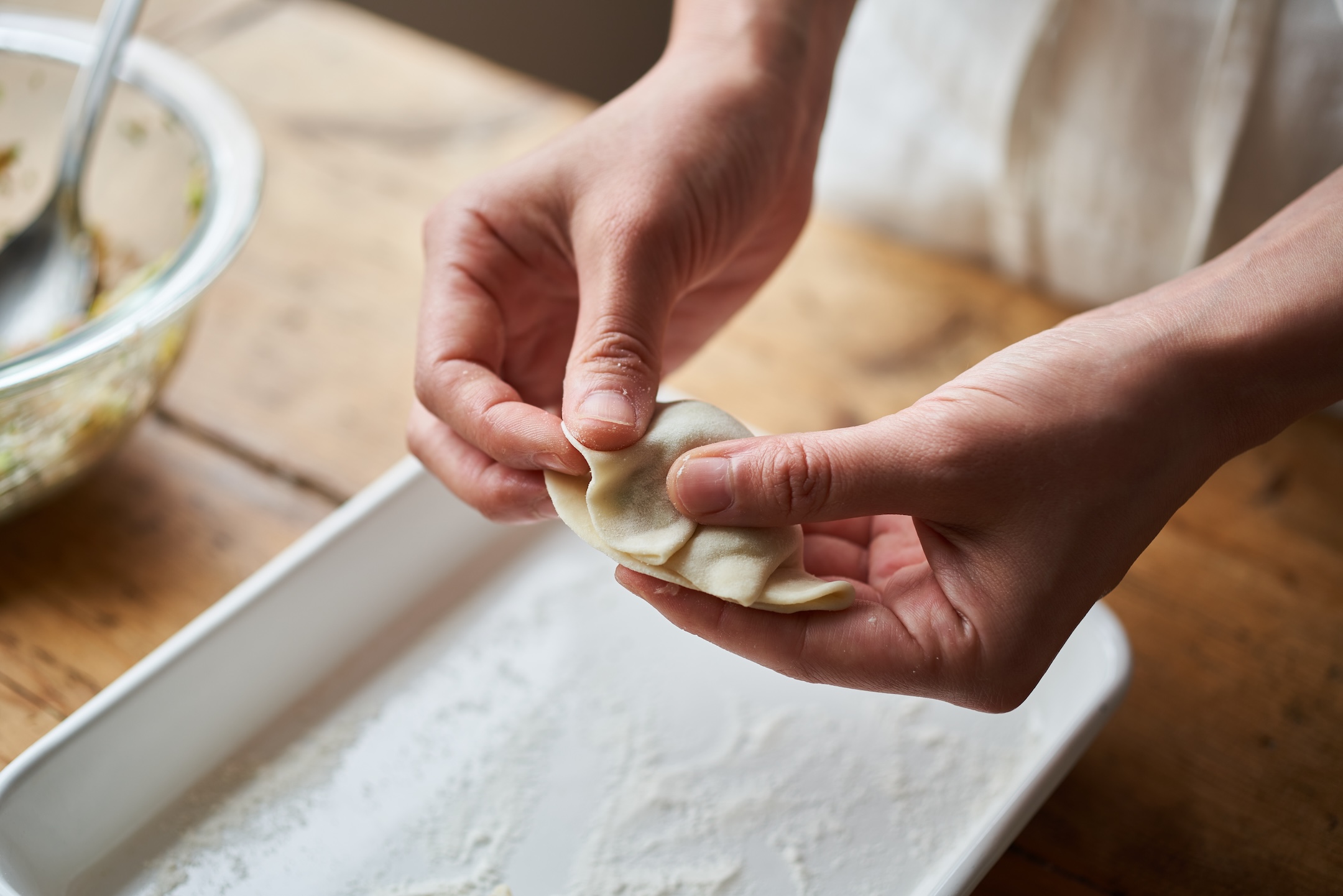 今回自家製の餃子の皮で作りました。作り方はこちら↓