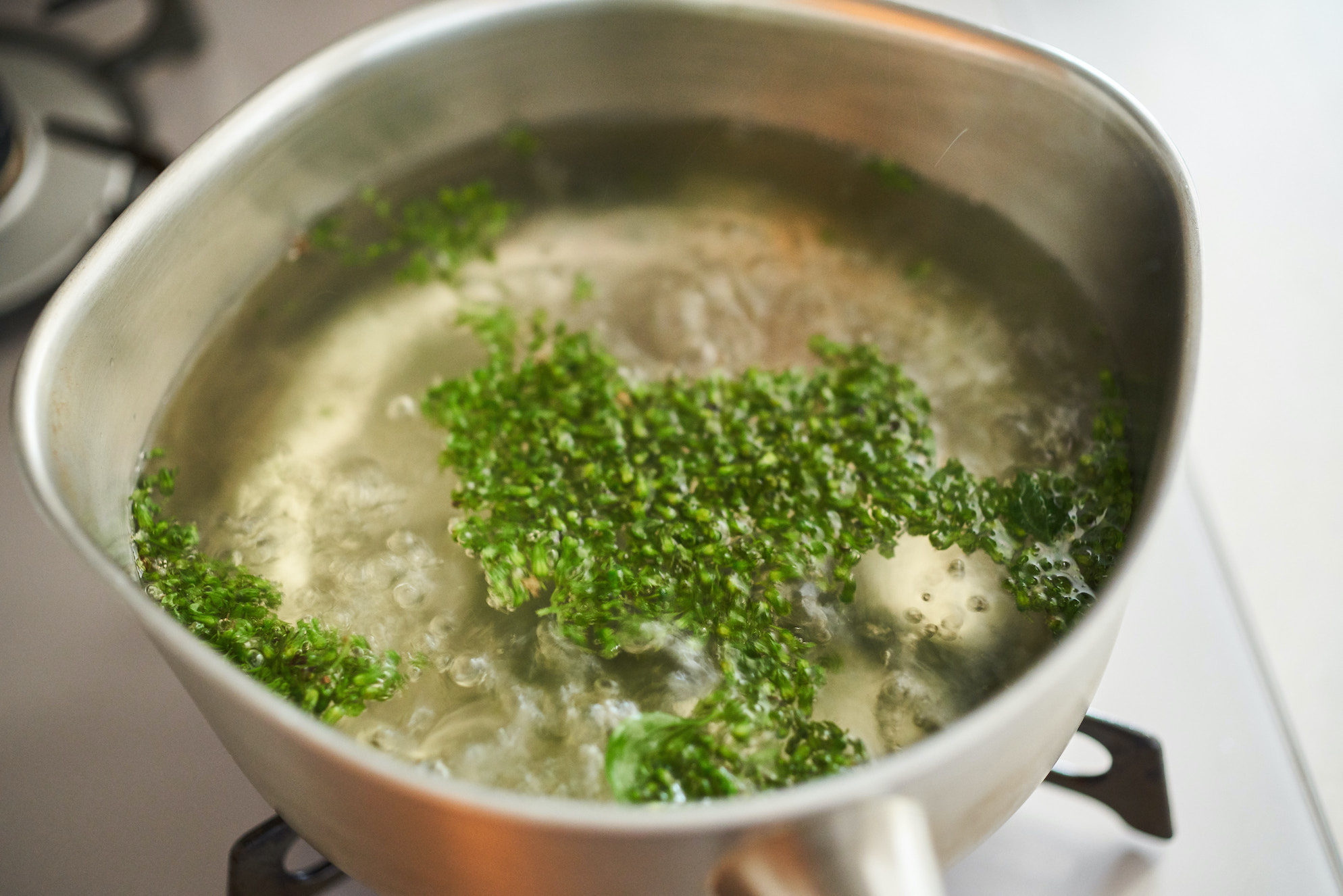 しその実は塩少々(分量外)を加えた湯を沸かして30秒ほど茹でる。