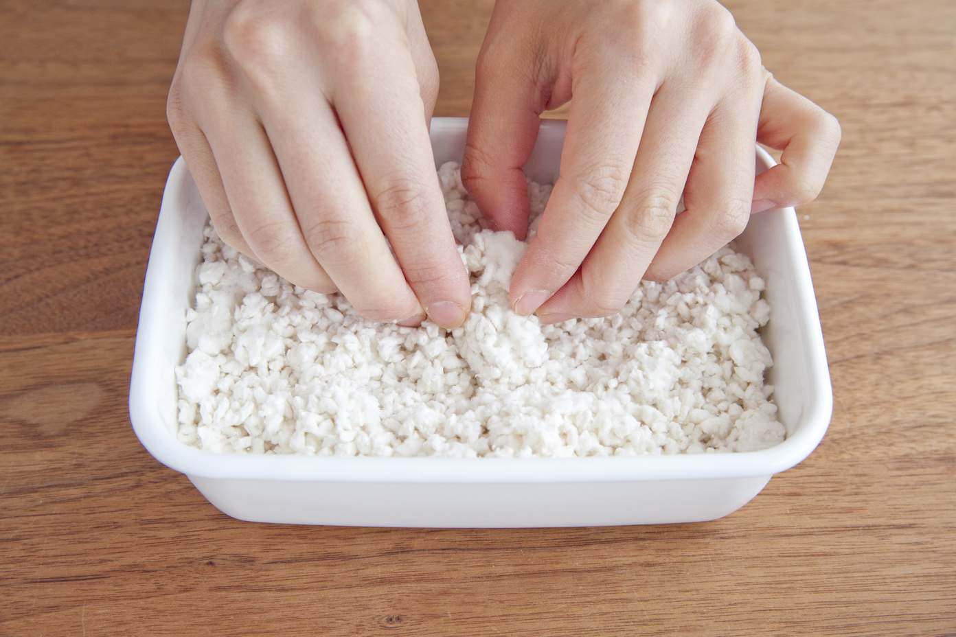 米麹を清潔な容器(ホーローやガラス容器がおすすめです)に入れ、