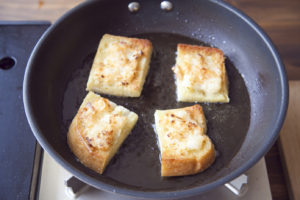 フライパンにオリーブオイル半量を中火で熱し、2を半量ずつ、 具の方から揚げ焼きにする。焼き色がついたら上下を返す。
