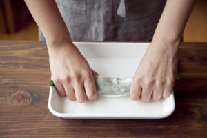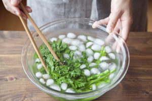 (氷水で急冷することで緑色が鮮やかに仕上がります。)