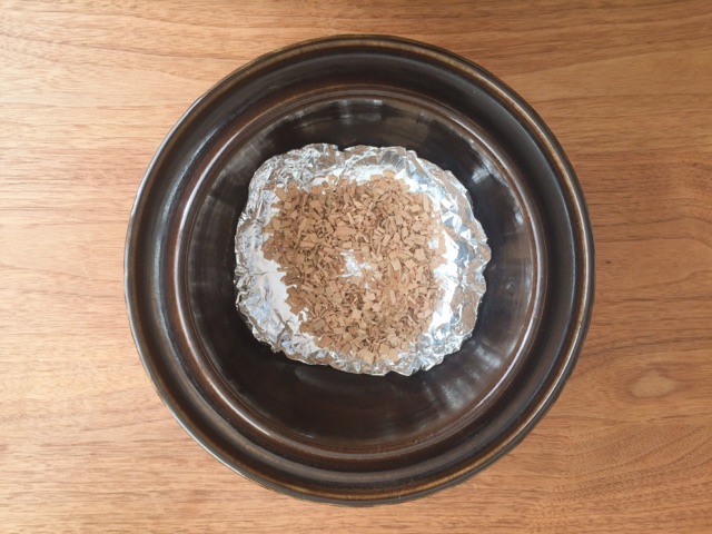 スモークウッドにバーナー等で火をつけ、スモーカーにセットし、サーモンの水気を拭き取って入れる。スモーカーの温度を15度程度に保って2時間半ほど燻す。