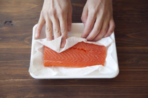 ほうじ茶の茶葉を使って、フライパンでできる手軽なスモークサーモンです。