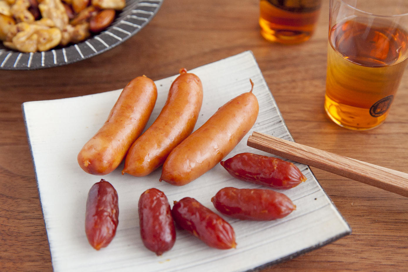 ウインナーの水気をキッチンペーパーでよく拭き取り、キッチンペーパーの上において冷蔵庫で30分以上乾燥させる。