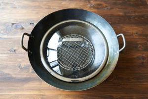 その場合、100円ショップなどにも売っている網を敷いて、フライパン蓋をして同様に作ります。