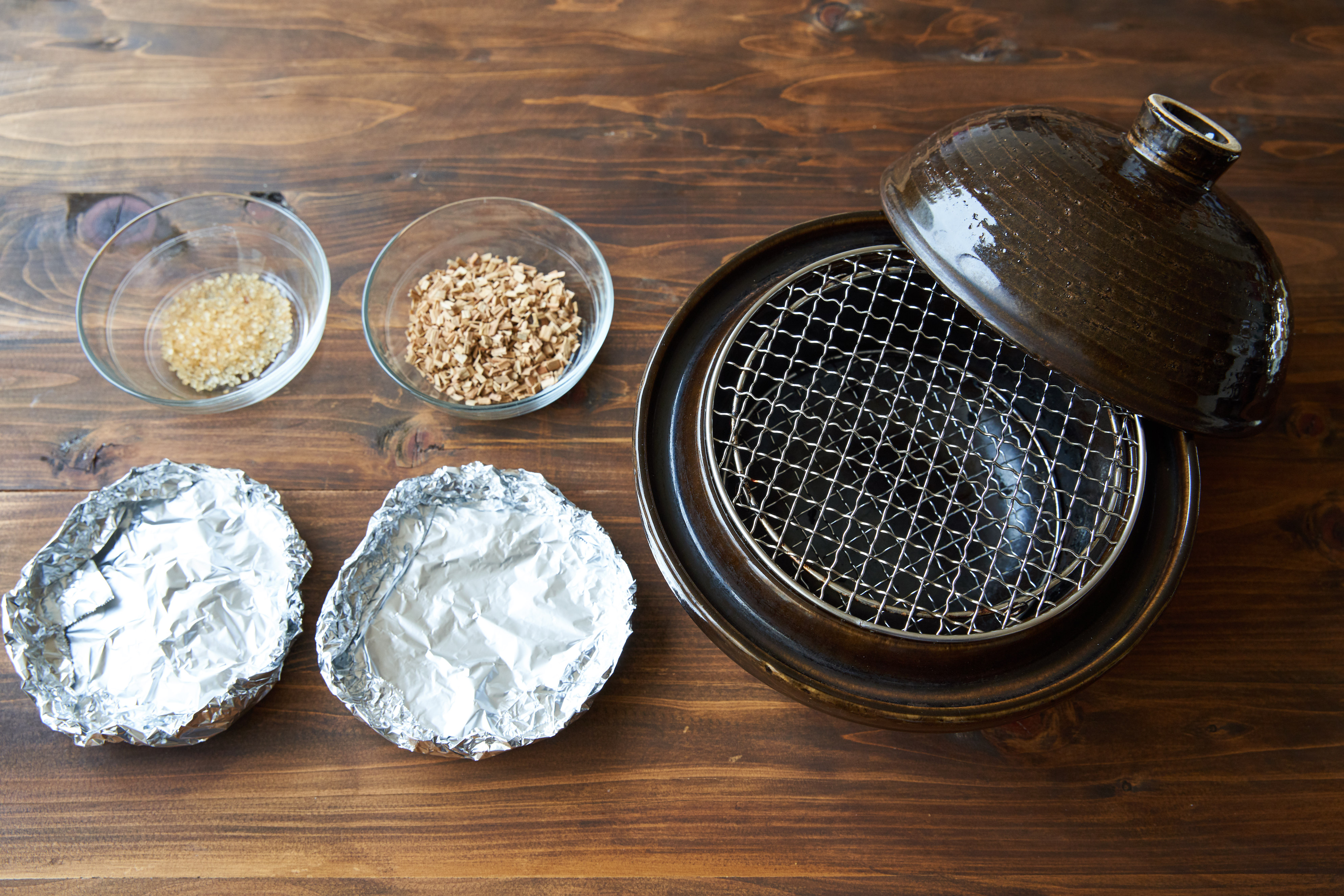 ちなみに、今回使用しているスモーク鍋は長谷園さんの「いぶしぎん」小。