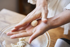 ・生地を丸める際は、崩れやすいので、まずぎゅっと握ってから、軽い力で丸くととのえると整形しやすいです。