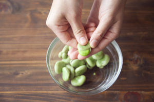 そら豆はパスタと同じ湯で茹でるので手軽です。