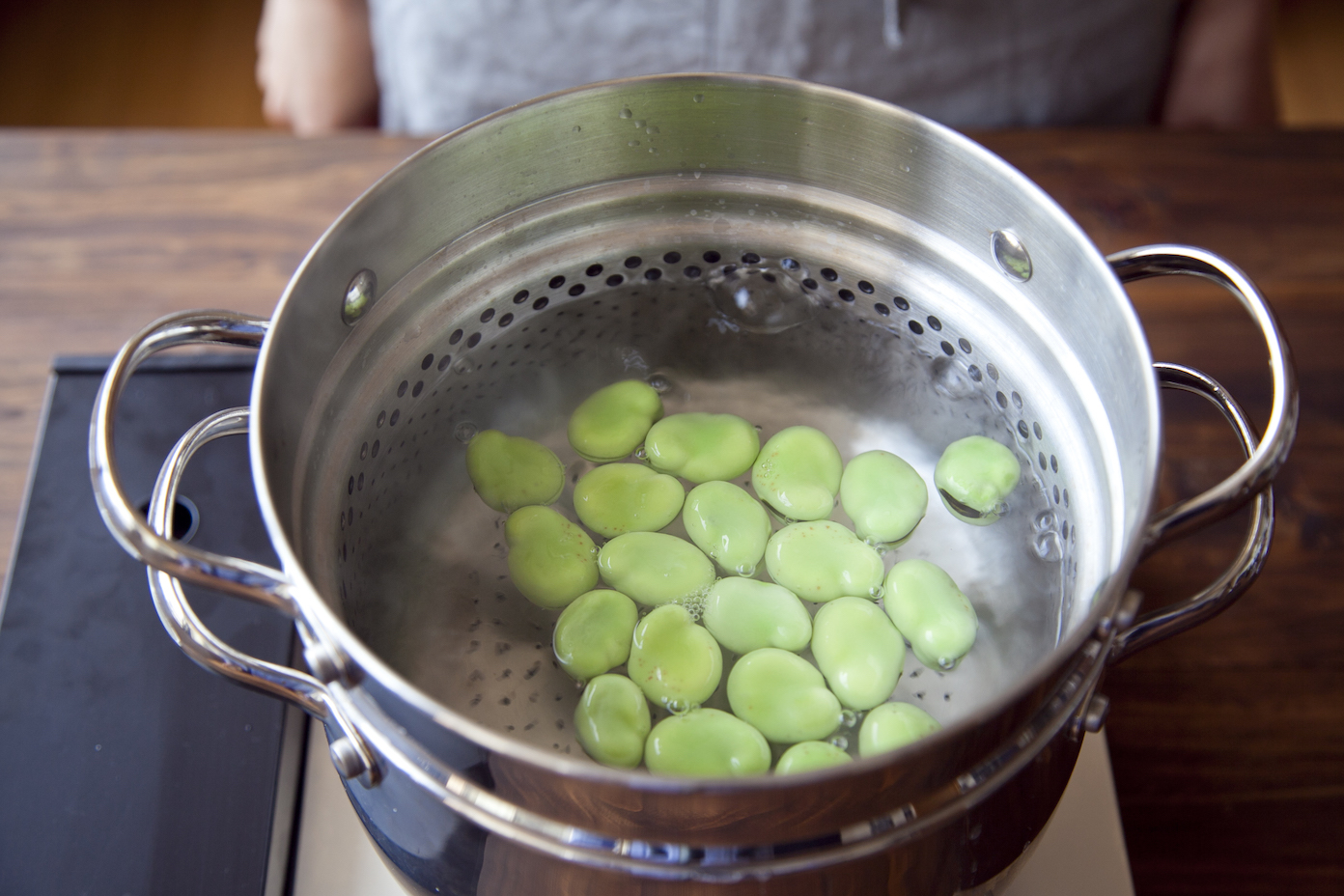 そら豆はパスタと同じ湯で茹でるので手軽です。