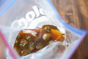 最後が砂糖になるようにして空気を抜いてジッパーを閉じる。