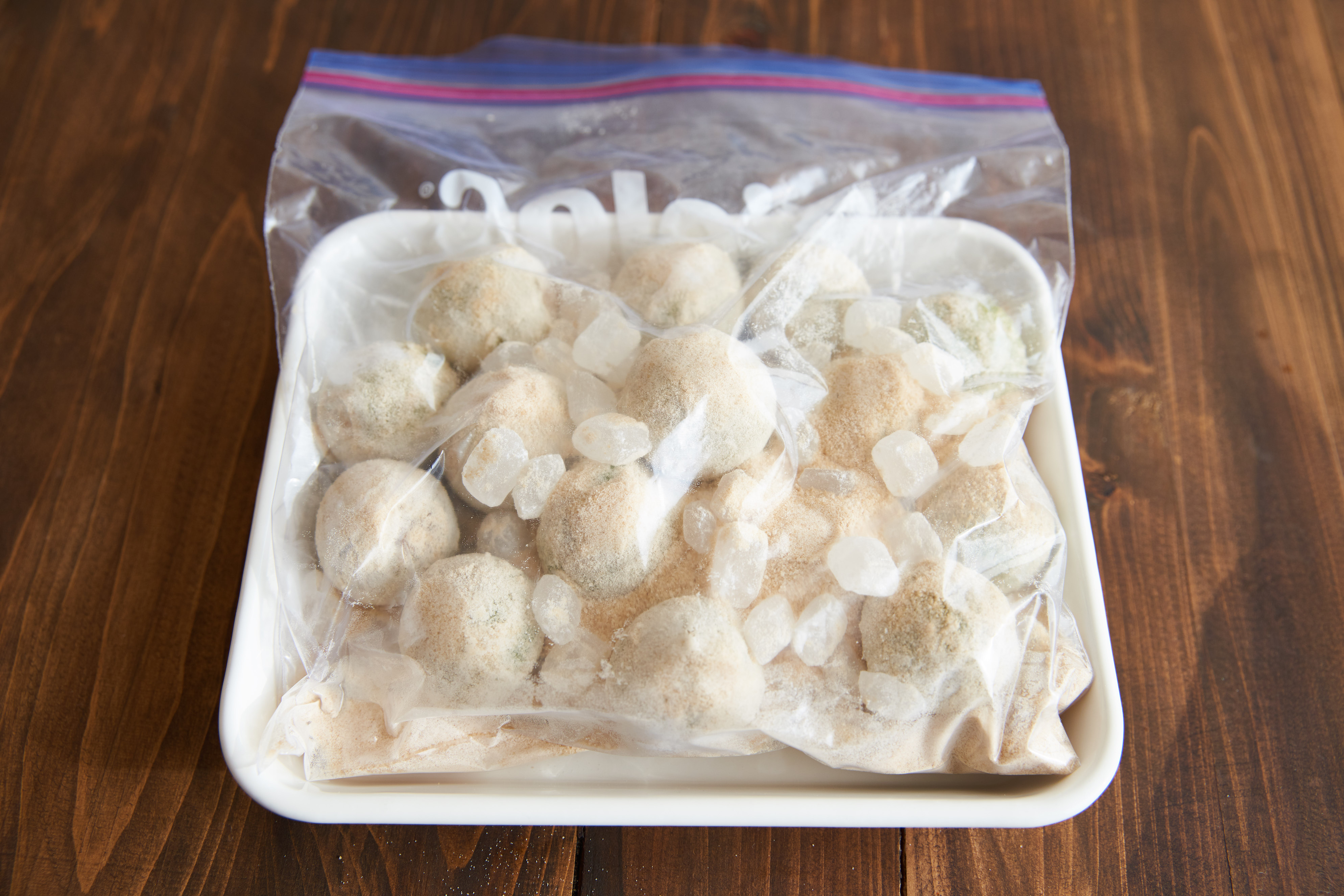 ジッパー付き保存袋(Lサイズ)に入れて冷凍する。