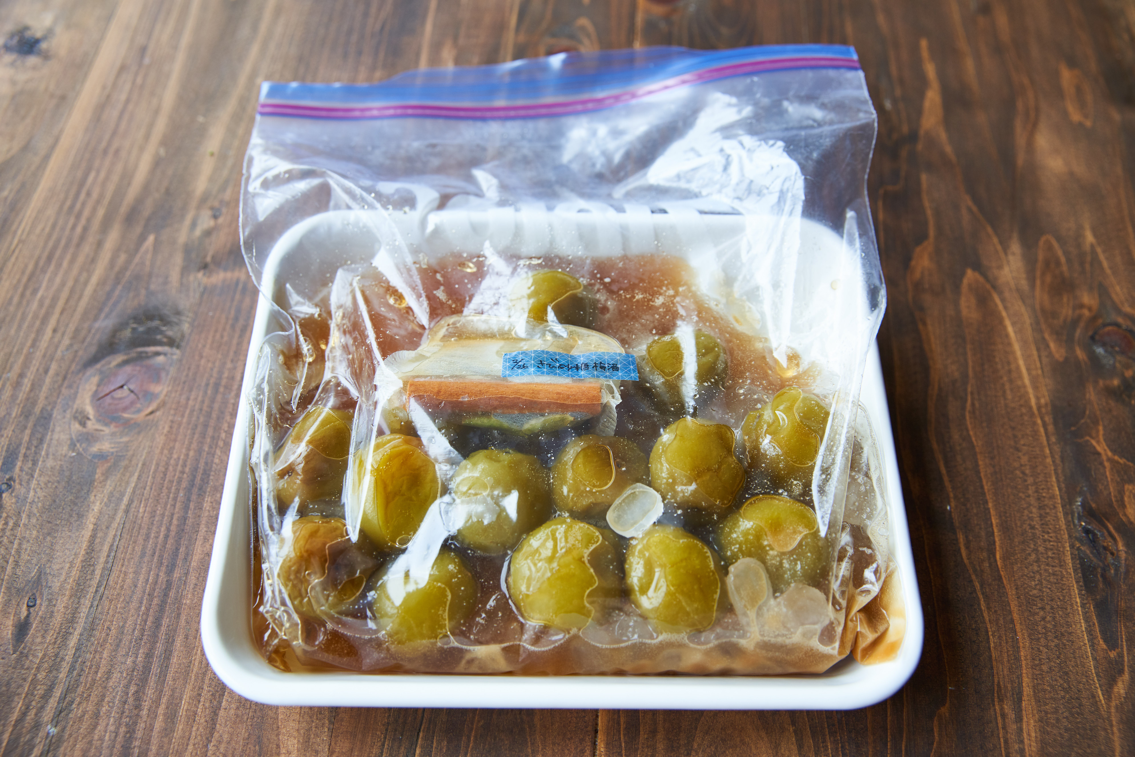 作り始めて2週間後程度から飲み頃。梅干しを取り除きシロップにして冷蔵庫で保存する。
