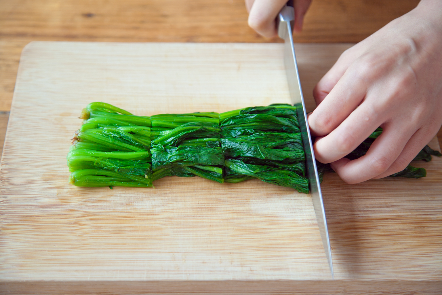 流水で冷まして、キッチンペーパーで水気をしっかり絞り、3〜4cmの長さに切る。
