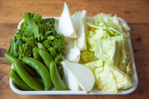 新玉ねぎ、春キャベツ、菜の花、スナップエンドウを使って、春をたっぷり味わえます。