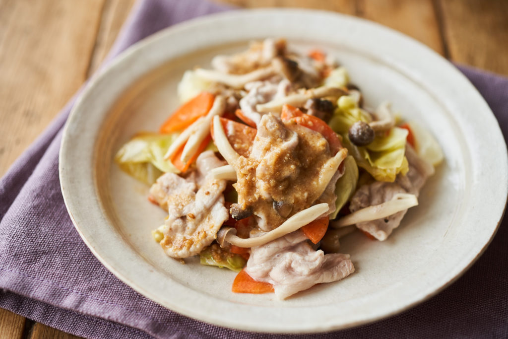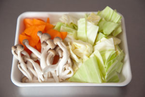 キャベツ、にんじん、しめじと野菜たっぷりでヘルシー、豚肉も入って栄養満点!