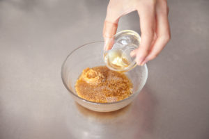 耐熱容器に(A)のみりん、酒を入れ、ラップをかけずに入れて電子レンジ600Wで50秒〜1分加熱して煮切る。
