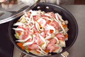 ●たっぷり野菜と豚肉のフライパン蒸し