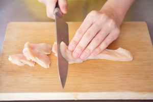 鶏むね肉がパサつかないポイントは、そぎ切りにすることと、片栗粉をまぶすこと!