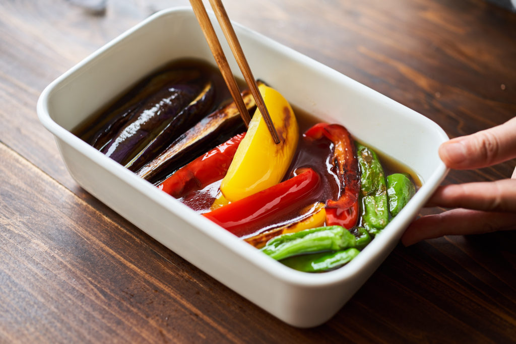 彩り鮮やかな夏野菜の焼きびたしの作り方です。