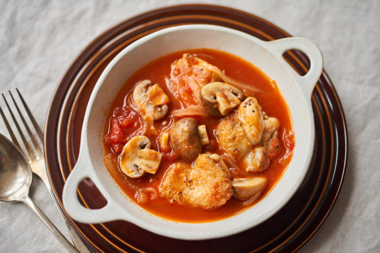 【糖質控えめレシピ】鶏肉とマッシュルームのトマト煮のレシピ