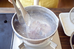 沸いたら弱めの中火にしてアクを取りながら15分ほど加熱し、