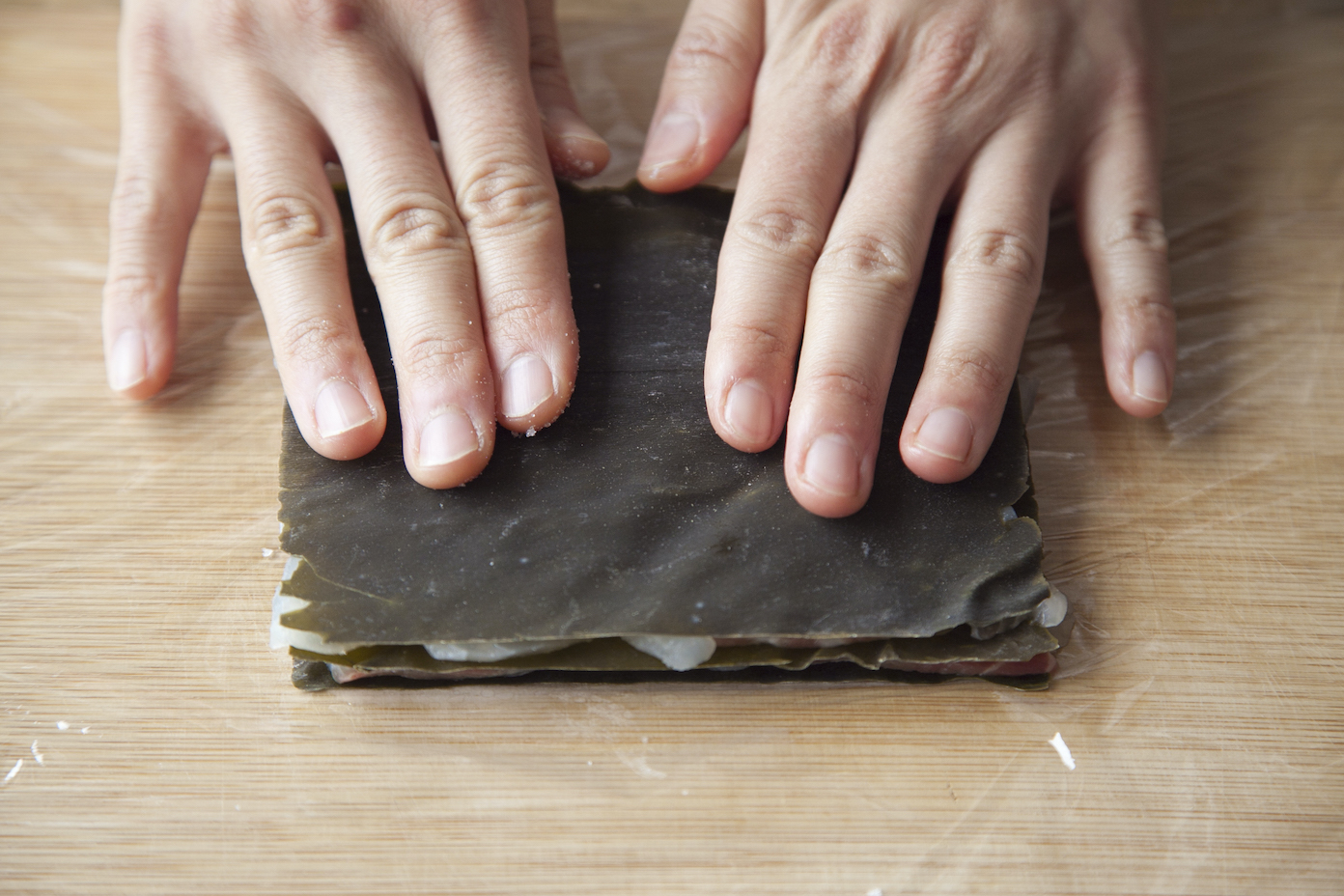 粗塩少々をふり、昆布をのせる。