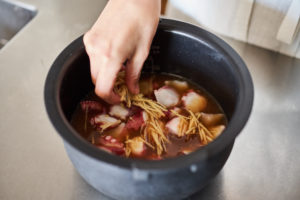 たこと一緒に炊くだけで、驚くほど美味しい”たこ飯”になります。