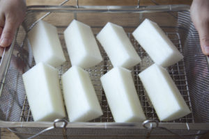 切ってから干すことで、数日で干しあがり、さらに味も入りやすいです。