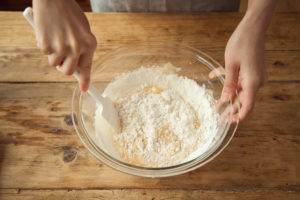 薄力粉、ベーキングパウダーを合わせてふるい入れる。