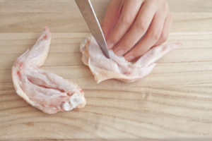 3分程度、手羽先に火が通るまで加熱し、器に盛り付ける。