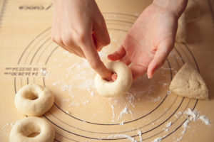 台に打ち粉(薄力粉/適量)をして、生地を6等分にする。