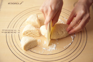 台に打ち粉(薄力粉/適量)をして、生地を6等分にする。