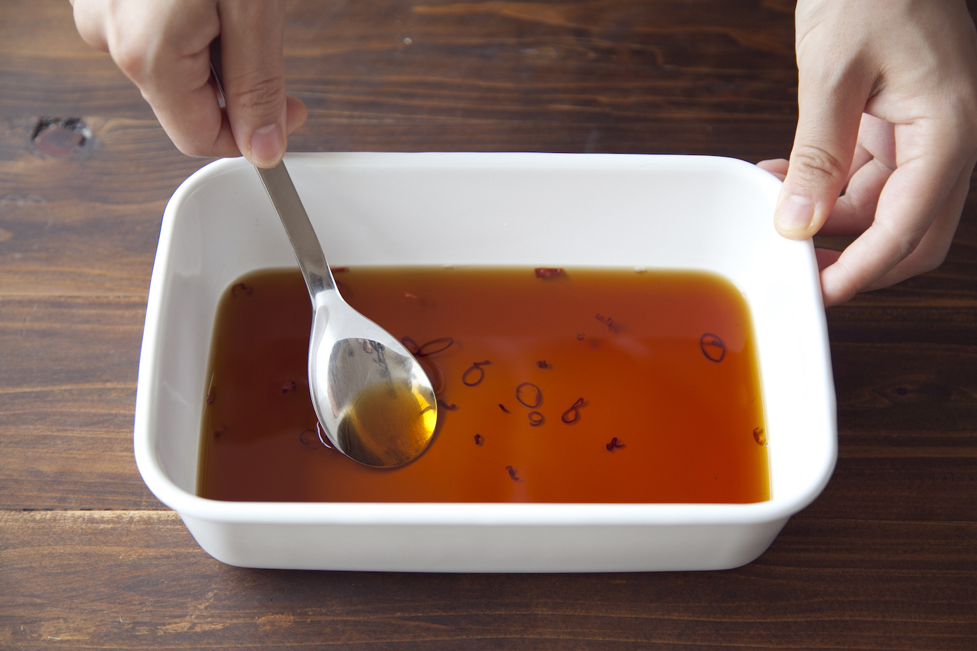 (A)しょうゆ、黒酢 各大さじ2