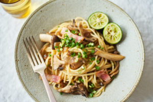 万能ねぎを散らし、しょうゆ少々をまわしかける。