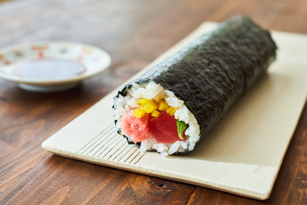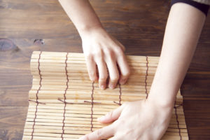 (※巻きすで巻くときは、空いている指で具材を抑えながら巻くと巻きやすいです。わかりづらい場合は動画も参考にしてみてくださいね。)