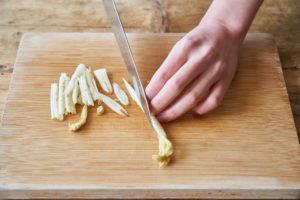 太い茎を使って残った、皮と穂先でつくる、きんぴらの作り方です。