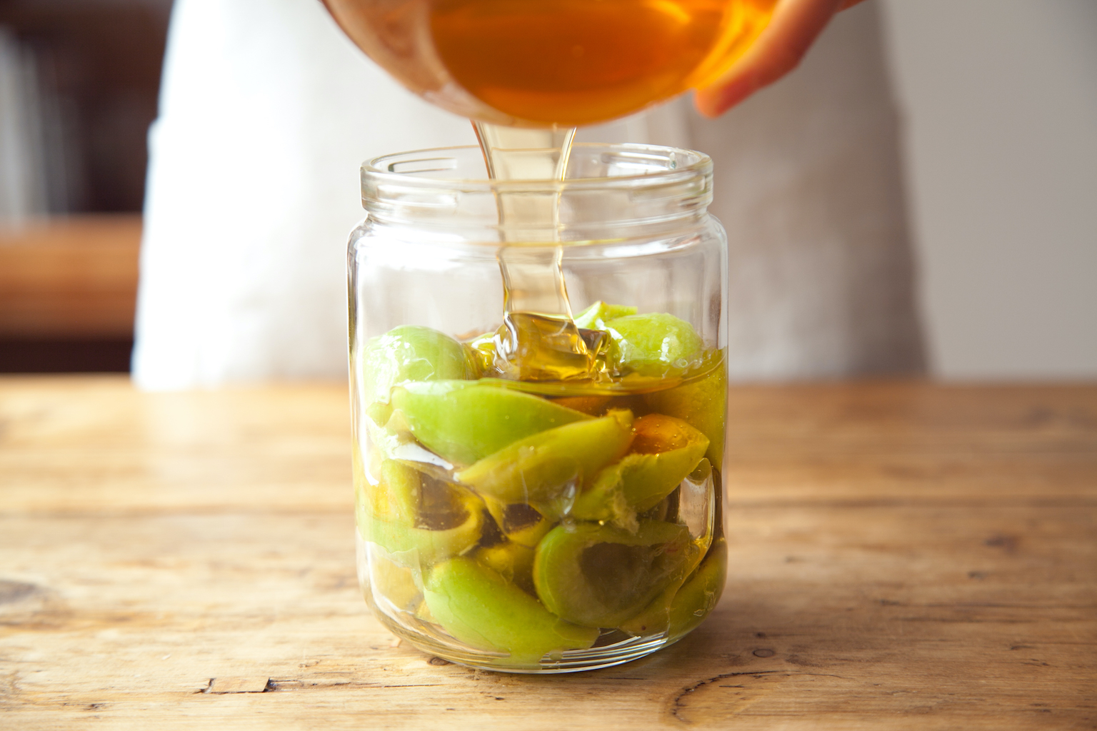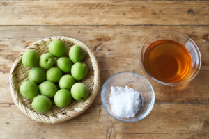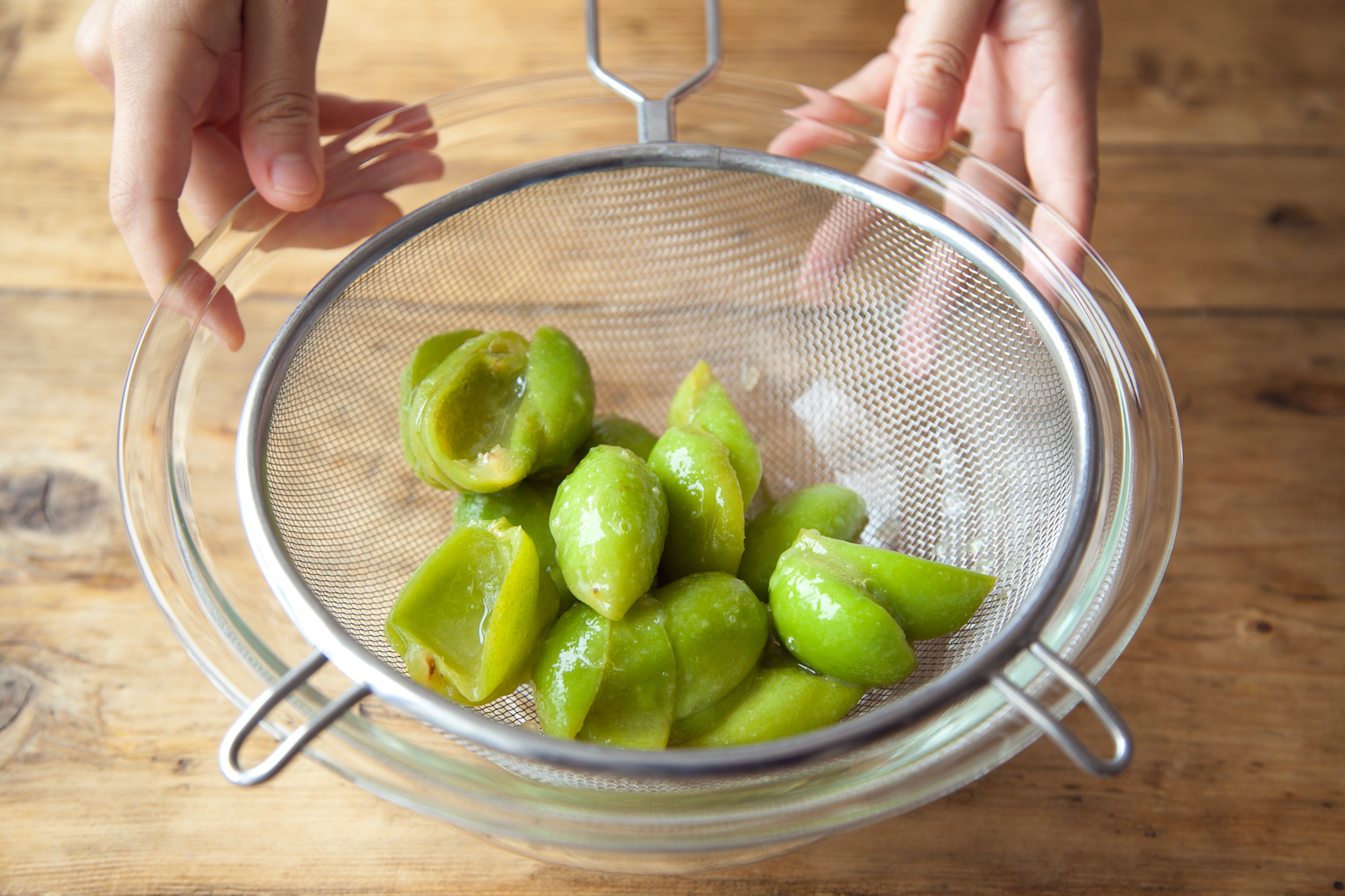 青梅を割って、はちみつにつけた青梅のはちみつ漬けです。