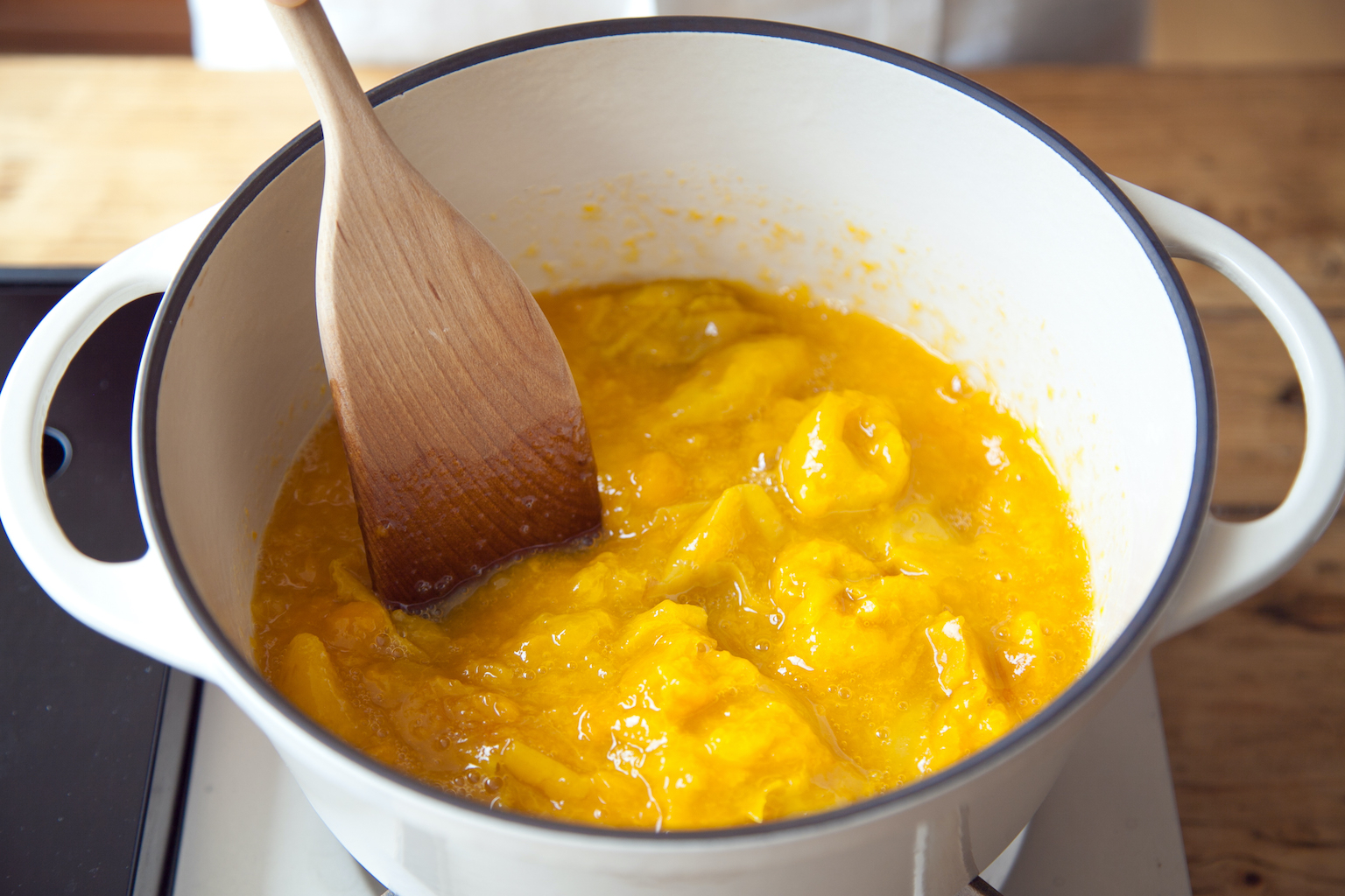 とろみがつくまで煮詰め、火を止めてはちみつを混ぜる。
