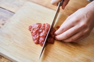 青唐辛子はヘタ、種を取り除いてみじん切りにする。
