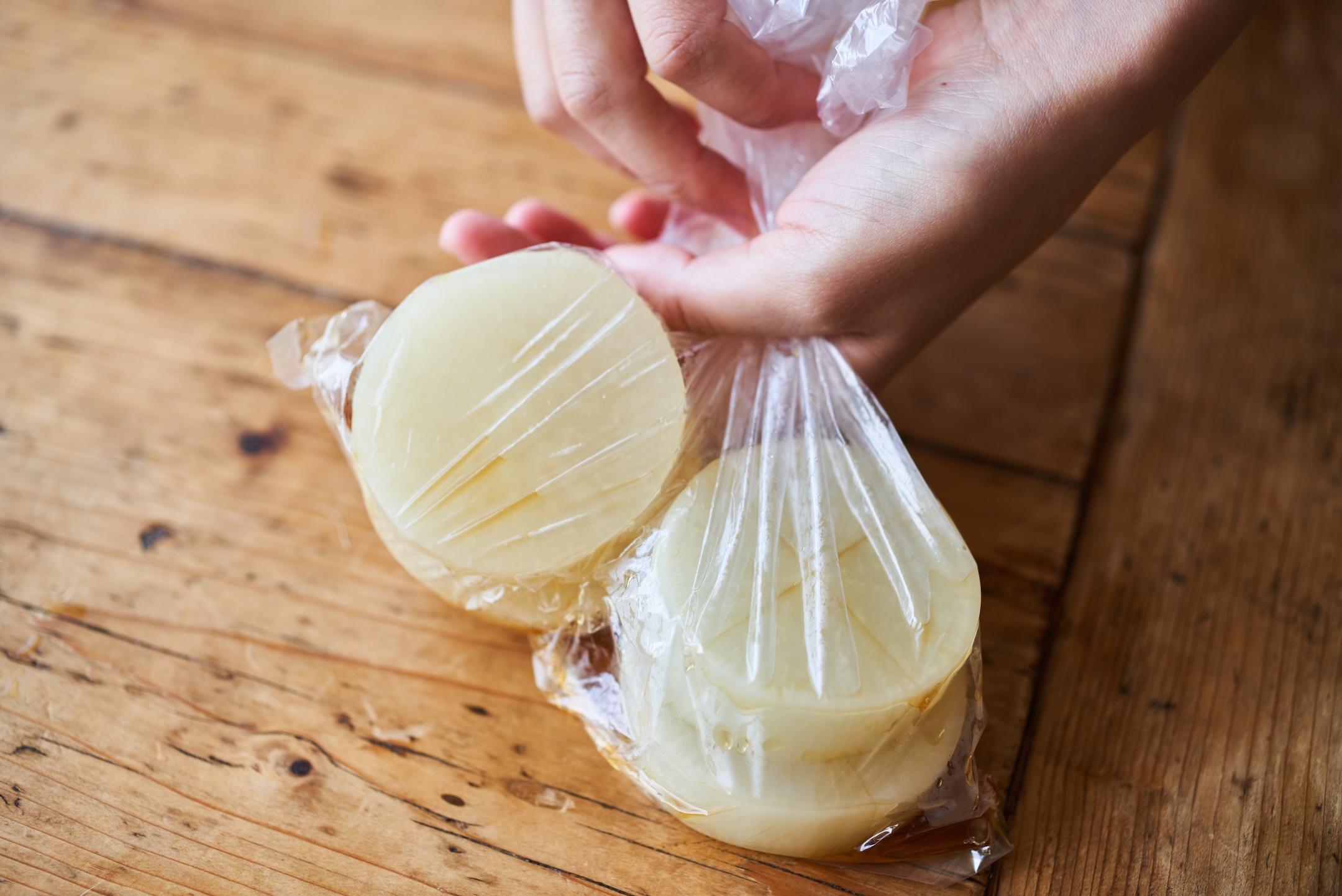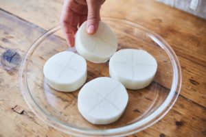 片面に十字に7mm程度の深さの切り込みを入れる。