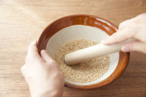 すりごまは、いりごまをすり鉢ですったものを使うと、より香りがたっておいしく仕上がりますよ!