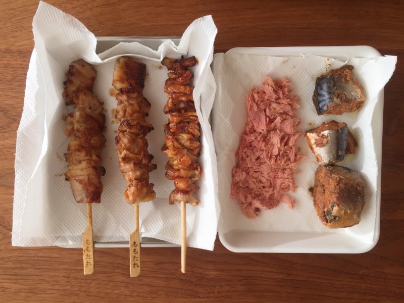 焼き鳥をキッチンペーパーの上において冷蔵庫で30分以上乾燥させる。