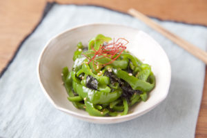 しょうゆ、みりんを加えて全体に和え、照りがでたら皿に盛り付ける。