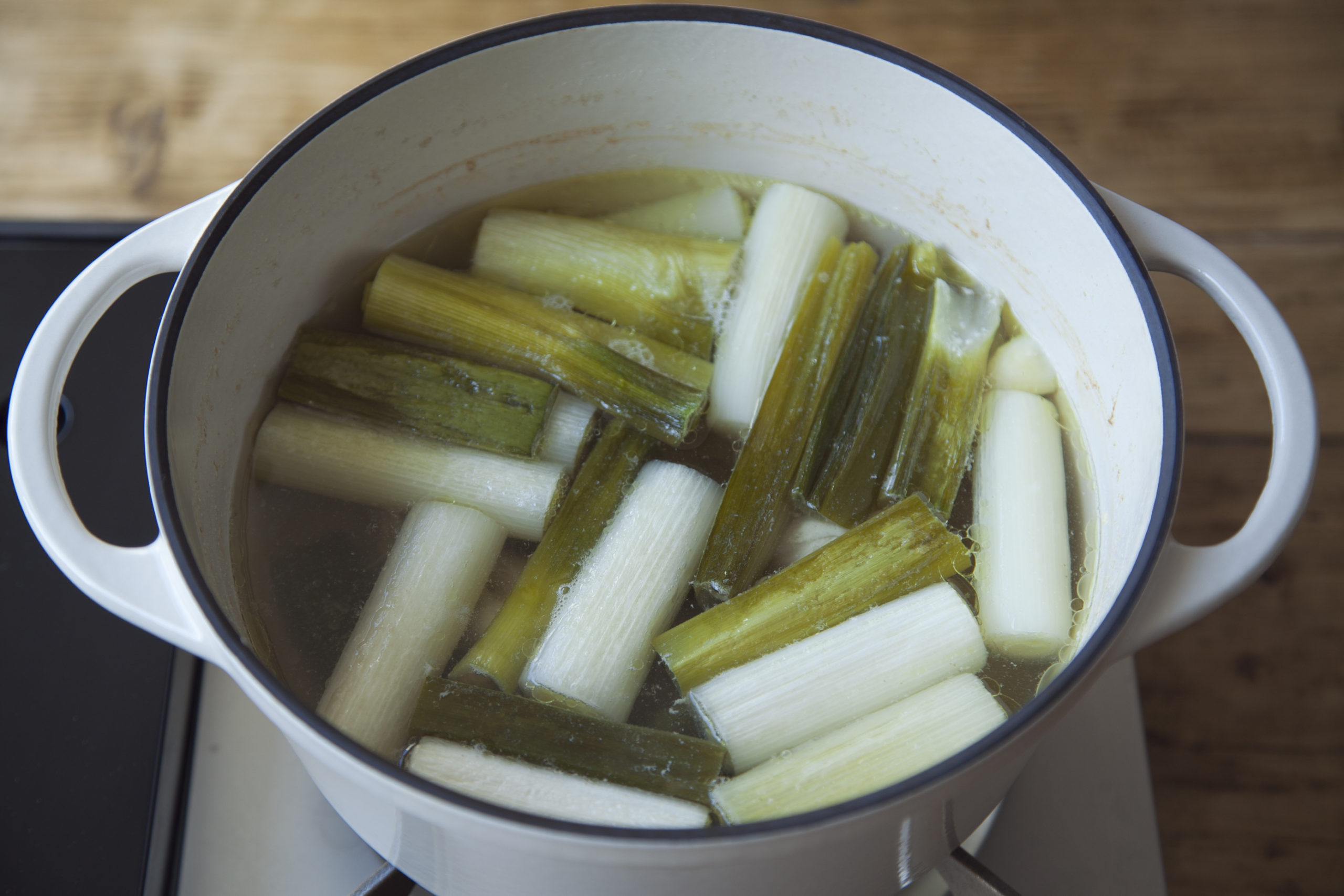 沸いたらアクをとり、弱火にしてふつふつと弱い沸騰状態を保つ。