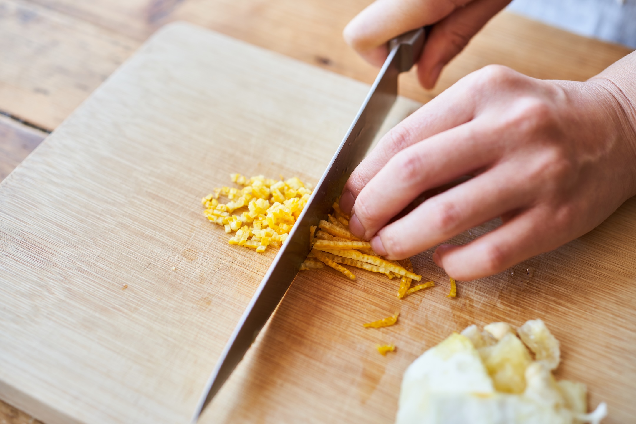 ゆずは果汁を絞り小さじ1を取り置く。ゆずは皮の半量を刻む。
