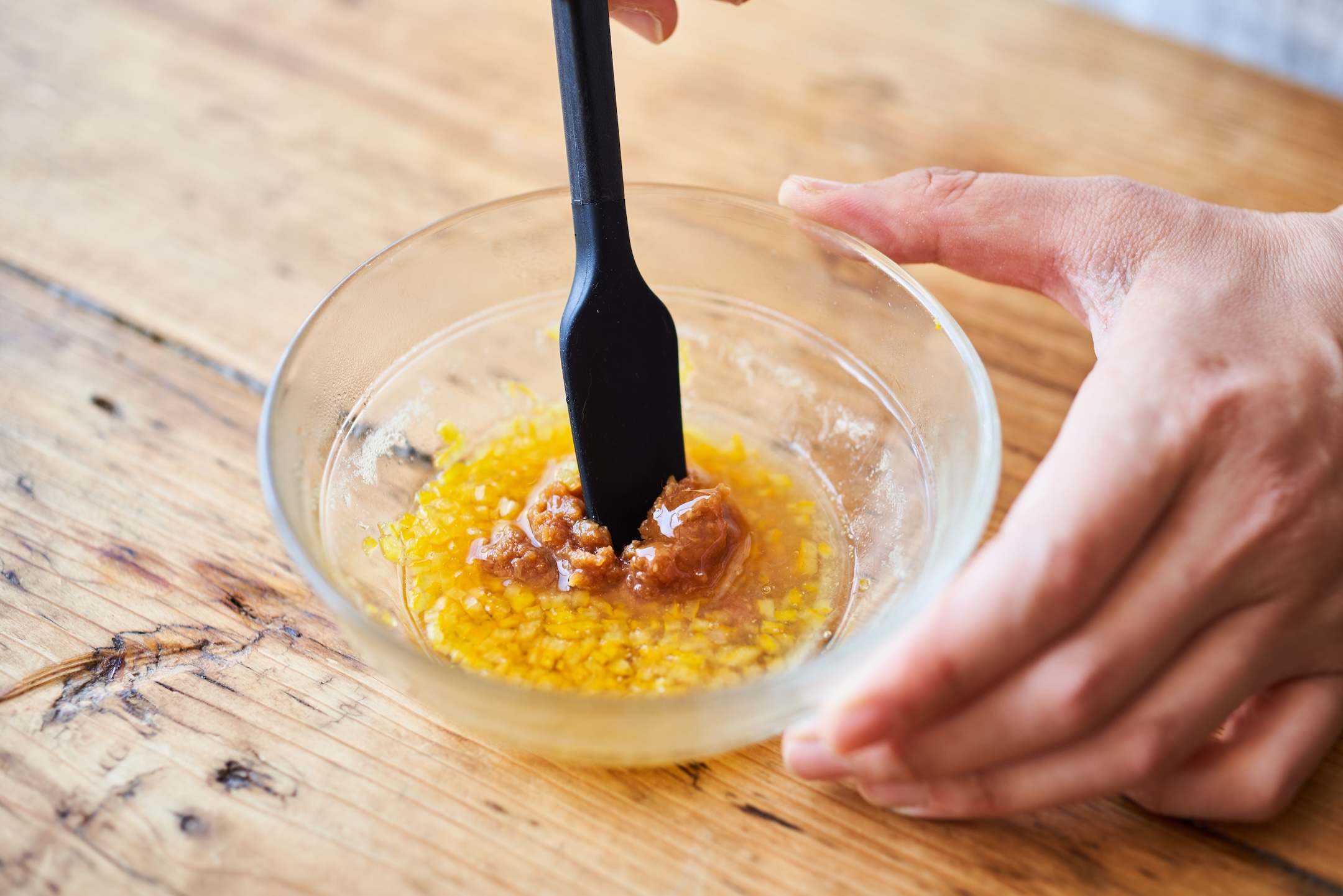みそ、はちみつ、ゆず果汁を加え混ぜる。